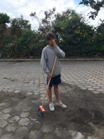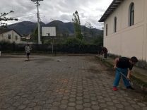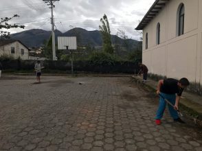 Nico, Gray, Lucca: Since we arrived in Turuco, a particular spot caught the attention of these three students — an abandoned basketball court that right now is used as a parking lot. They measured the court, got the official measurements, and realized that they can remodel this space without it ceasing to be a parking lot. They are very excited about it but they found their first challenge, which is to clean the ground before starting to paint.