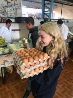 Gabe, Chuli: Every morning the group wakes up with the sound of dogs barking, roosters crowing, and the cries of a David (a child in the community) shouting to Chuli and Gabe to come out and play. This is an example of the friendship that these two students have established with the children of the community. Some of the children are in charge of tending to the little store near the soccer field, and sometimes they can’t go out to play because they have to stay and watch the store. Gabe and Chuli decided to speak with the person in charge and offered their time and energy to tend the store so the family can have more free time. They have been doing this for a day and we can see a growth in sales because of all the visits from Putney students who go to visit their friends.